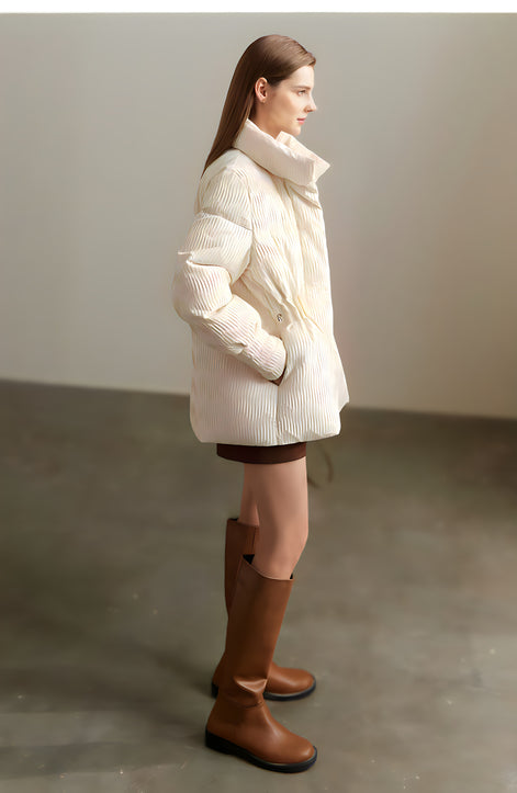 Affichez un style unique cet hiver avec cette doudoune texturée haut de gamme, au tissu plissé en relief 3D ultra tendance. Sa taille ajustable permet de la porter cintrée ou loose selon l’envie, tandis que son col montant protège efficacement du vent. Un parfait équilibre entre chaleur, légèreté et sophistication.