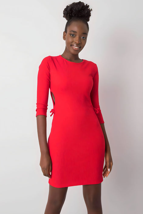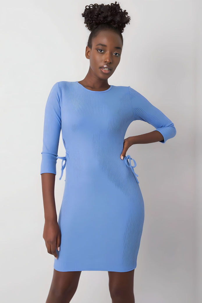 Une robe crayon décontractée en tissu côtelé est une proposition élégante et confortable pour tous les jours. Fabriquée en coton avec une touche d'élasthanne, elle s'adapte à la silhouette et assure un confort de port. Ce modèle mini, avec un décolleté rond et des manches 3/4, met en valeur la silhouette féminine et donne à l'ensemble un caractère moderne. Le motif lisse est complété par des découpes élégantes sur les côtés avec un laçage décoratif, qui ajoutent de l'originalité à la robe. Parfait avec des baskets, des bottines ou des sandales pour toutes les occasions quotidiennes.