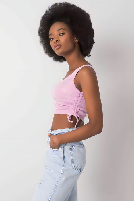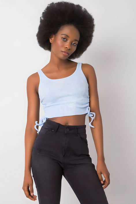 Haut court à bretelles en matériau côtelé est une proposition à la mode et confortable dans un style décontracté. Le motif lisse et l'encolure ronde classique rendent ce modèle polyvalent et facile à styliser au quotidien. Fabriqué en coton doux avec une touche d'élasthanne, ce haut s'adapte parfaitement à la silhouette, offrant un confort de port. Un autre atout sont les plis sur les côtés terminés par des cordons, qui permettent de régler la longueur du t-shirt et de l'adapter à ses propres préférences. C'est un choix parfait pour les jeans, les shorts ou les jupes taille haute idéal pour l'été, les promenades et les rencontres décontractées entre amis.