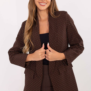 Une veste de costume pour femme élégante sans fermeture est un élément exceptionnel de la garde-robe, créé pour des occasions spéciales, idéal pour les fêtes, les réunions professionnelles ou les sorties du soir. Fabriquée à partir d'un mélange de polyester et de viscose, avec une doublure assurant un confort de port. Les revers en fonte lui confèrent une élégance classique. Le tout est recouvert d'une application de strass brillants qui reflètent magnifiquement la lumière, attirant l'attention et donnant à la tenue un caractère exceptionnel. Sa longueur standard et ses manches longues en font un choix universel, qui se marie parfaitement aussi bien avec un pantalon qu'avec une jupe. C'est une veste qui allie élégance et touche de glamour, parfaite pour les femmes qui apprécient le style et une touche de brillance dans leurs tenues.